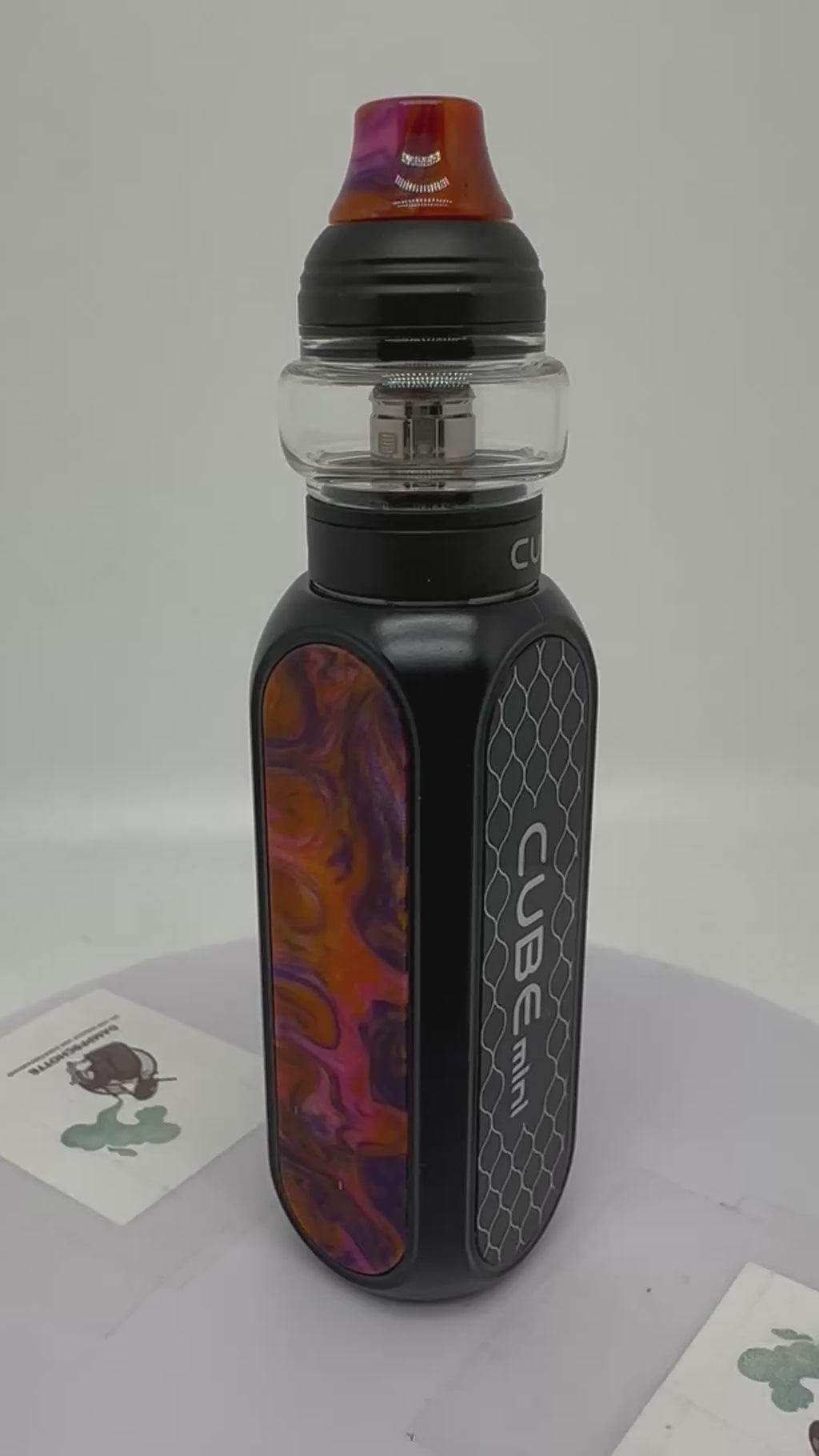 Der Cube Mini wird aus einer Zinklegierung gefertigt und mit neuen Designs versehen. Der Cube Mini Mod misst gerade einmal 70 mm x 25,5 mm x 25,5 mm und integriert neben dem großen Akku einen Chipsatz welcher im konstanten Ausgangsmodus mit 3,5 Volt arbeitet.                                                                                                                            Die unter dem großflächigen Feuertaster befindliche LED zeigt den Ladestand des Akkus in 3 Farben an. Dank des großen Feuertasters ist die Bedienung des Mods noch einfacher. Geladen wird der Akku bequem über den integrierten Micro-USB Port.